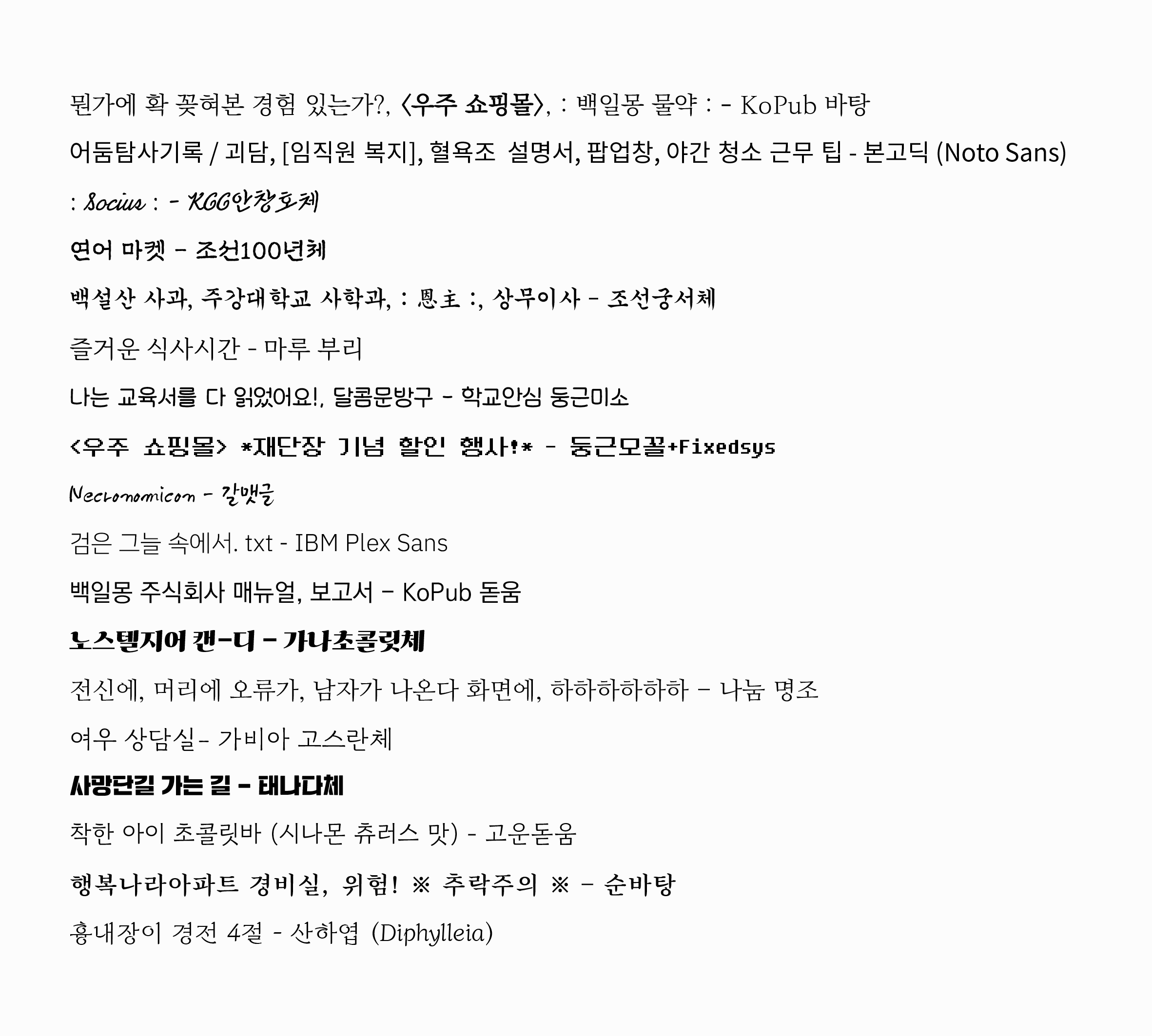 • 서체 이름을 누르면 해당 서체 다운로드 페이지로 이동됩니다!