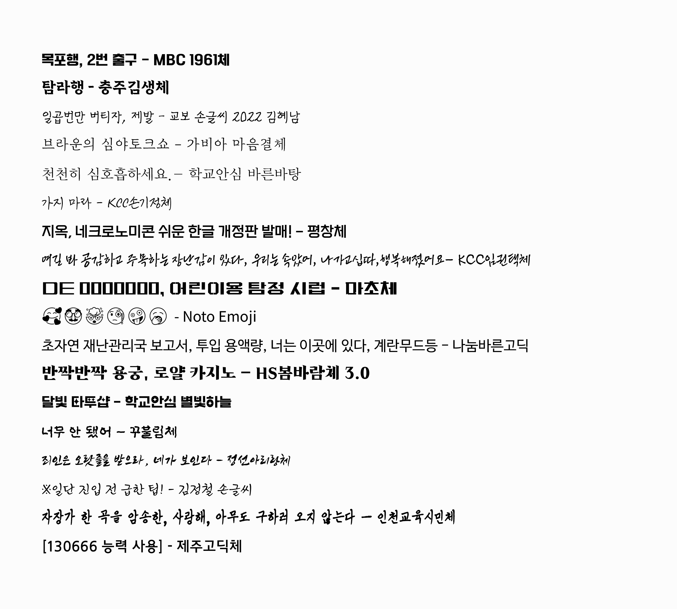 | Noto Emoji | 나눔바른고딕 | HS봄바람체 3.0 |