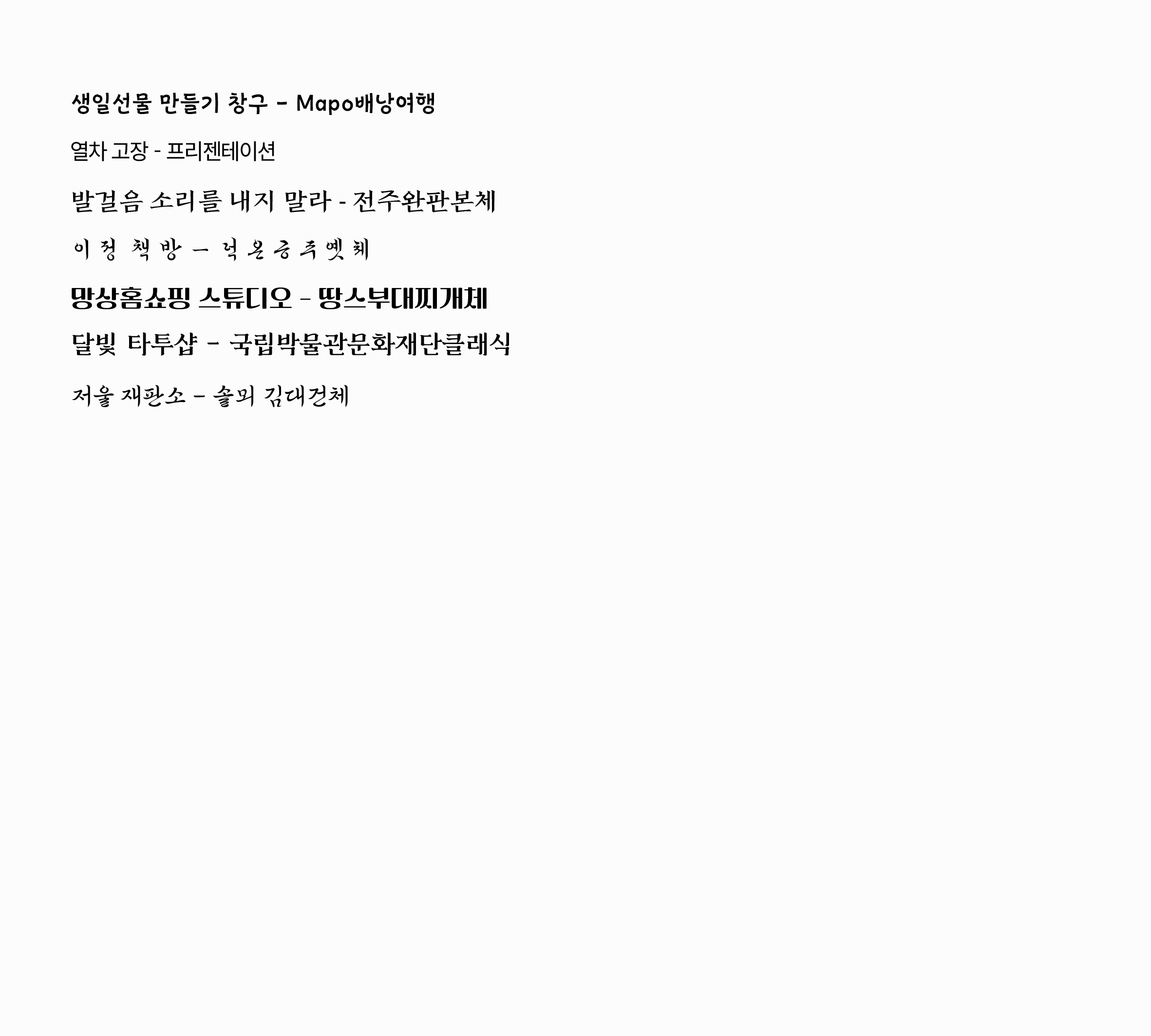 | 김정철 손글씨 | 인천교육시민체 | 제주고딕체 |